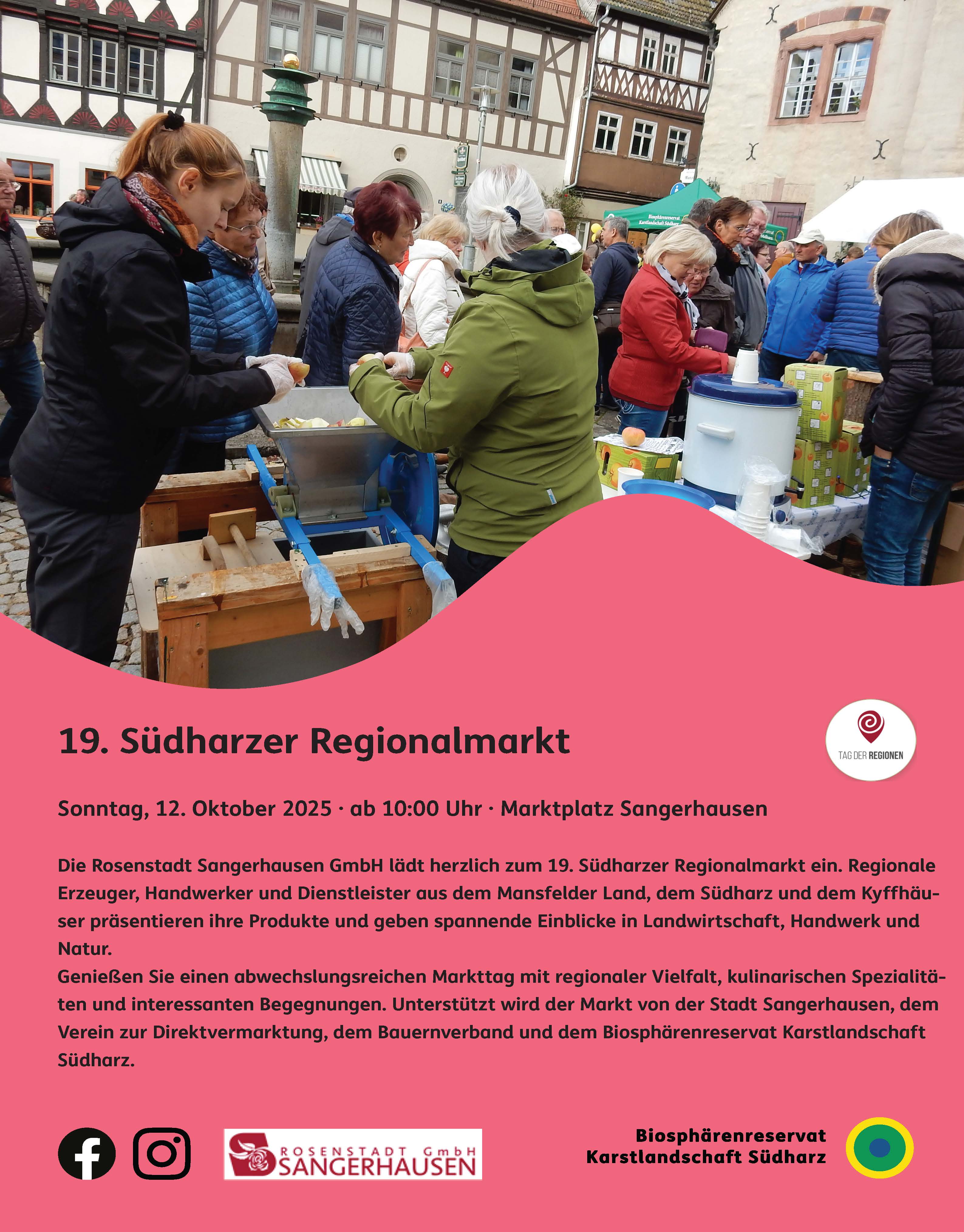 Wir laden Sie wieder recht herzlich zu unserem 19. Südharzer Regionalmarkt nach Sangerhausen ein.