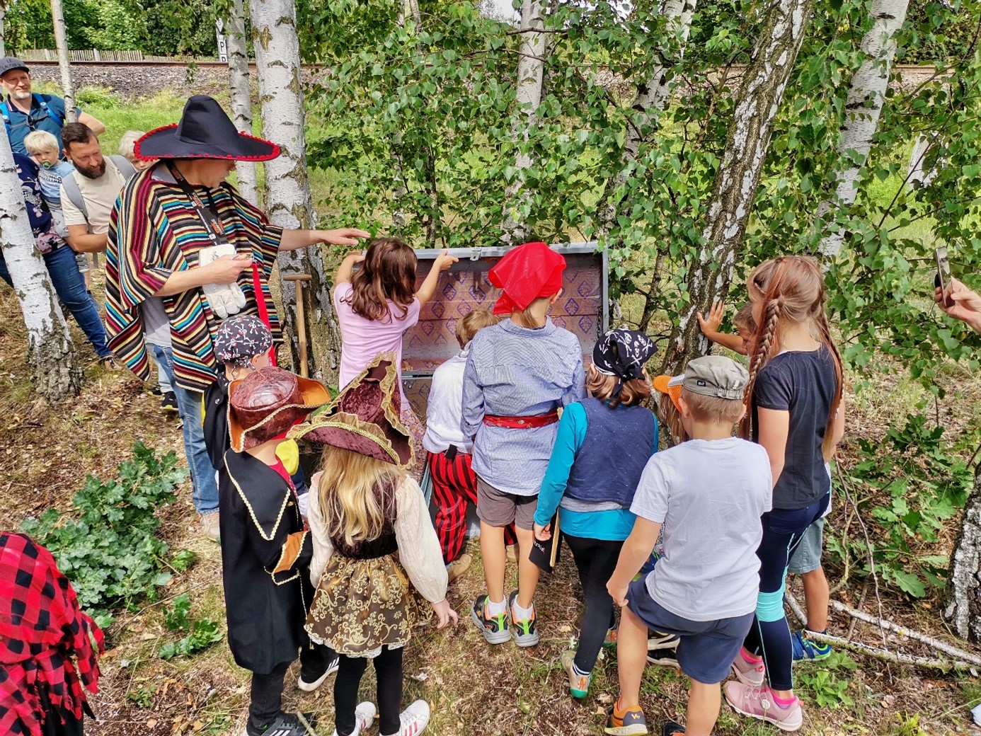 Am 02.08.2025, um 14:45 Uhr startet der Personenzug unter dem Slogan „Auf großer Fahrt zur Schatzsuche“ – im Hochsommer allerdings planmäßig mit Diesellok – hat man aber die eine oder andere Überraschung für Groß und Klein im Programm. Kinder bis einschließlich 13 Jahren welche im Kostüm als Abenteurer, Forscher oder Pirat kommen, dürfen an der Schatzsuche teilnehmen und sich auf eine kleine Überraschung freuen. „Natürlich dürfen sich auch die Erwachsenen entsprechend kostümieren, umso mehr Spaß wird das Ganze machen“, so Zeddel, weiter. Mit Schatzkarte bewaffnet, gilt es das eine oder andere Rätsel zu lüften und den Schatz, bestehend aus leckeren Süßigkeiten, zu finden.